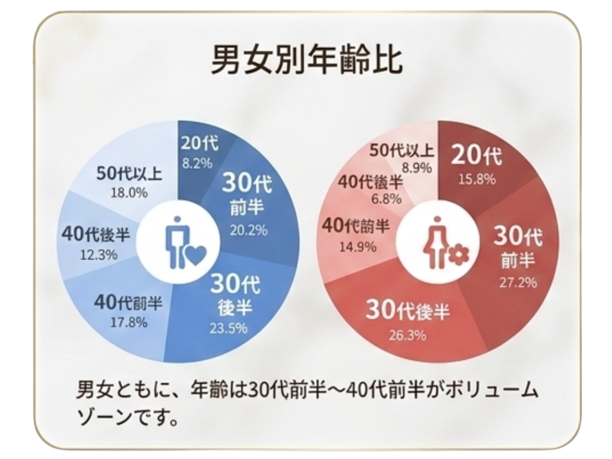 どのような方々が婚活をしているのか、入会者数・成婚者数・年齢層・エリアなどのデータをまとめました。